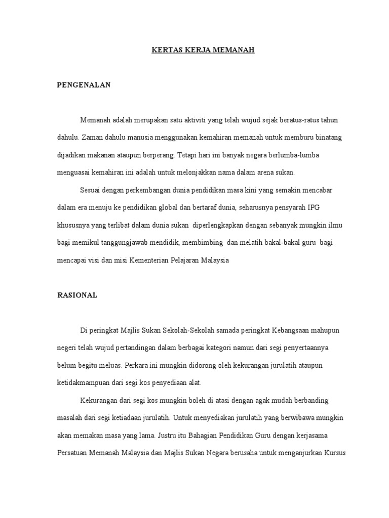 Kertas Kerja Pertandingan Memanah Pdf
